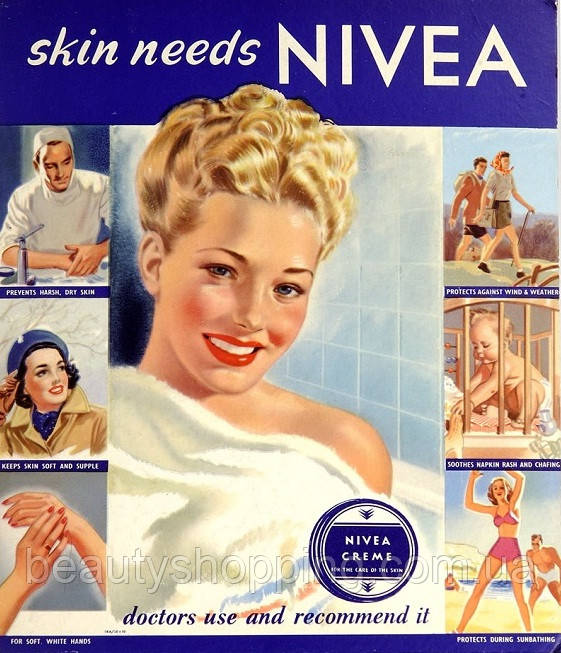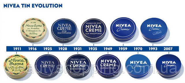У нашій пам'яті зберігаються картини того, як наші матері мажуться цим кремом, вдень і ввечері. Ми пам'ятаємо, як ніжний білий крем втирали нам у шкіру після купання або перед тим, як відпустити нас пограти з друзями. Ми пам'ятаємо навіть наших батьків, які використовують крем NIVEA як лосьйон для гоління або бальзаму, що пом'якшує подразнення свіжої шкіри. Ці та інші спогади зробили Синю Банку NIVEA частиною сімейного життя багатьох поколінь. Але був час, коли колір Синей Банкі ще не був синім. Коли в 1911 році ми запустили на ринок крем NIVEA, він продавався в жовтій банці, прикрашеній зеленими завитшками в стилі модерн. Так було доти, поки громадськості не був представлений крем у новому пакованні, що відповідає духу часу. І 1925 року народилася знаменита Синя Банка. Відтоді вони залишалися практично незмінними — Синя Банка, унікальний аромат і оксамитова текстура крему NIVEA. Можливо, тому багато людей пов'язують свої спогади саме з цим кремом, який не просто живить шкіру та забезпечує її надійним доглядом, а й повертає нас до картин, ароматів і відчуттів нашого дитинства.